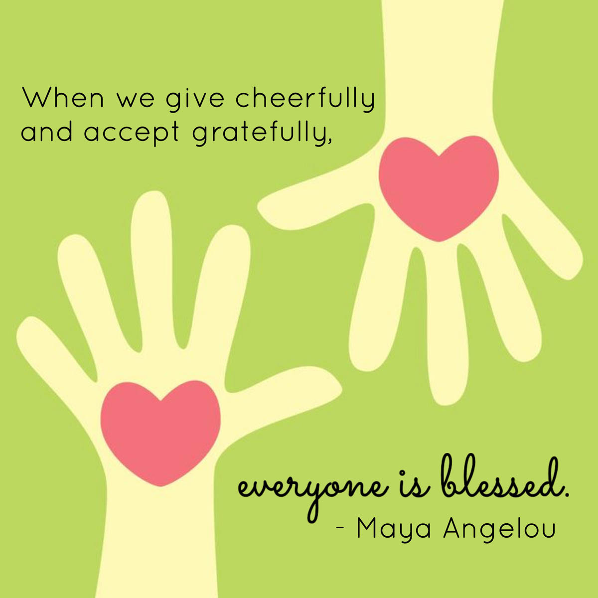 我喜欢阅读玛雅·安杰洛的智慧,我喜欢专注于感恩。玛雅·安杰洛的这句美丽的名言对成年人和孩子都很发人深省和重要:“当我们愉快地给予和感激地接受时,每个人都是有福的。”